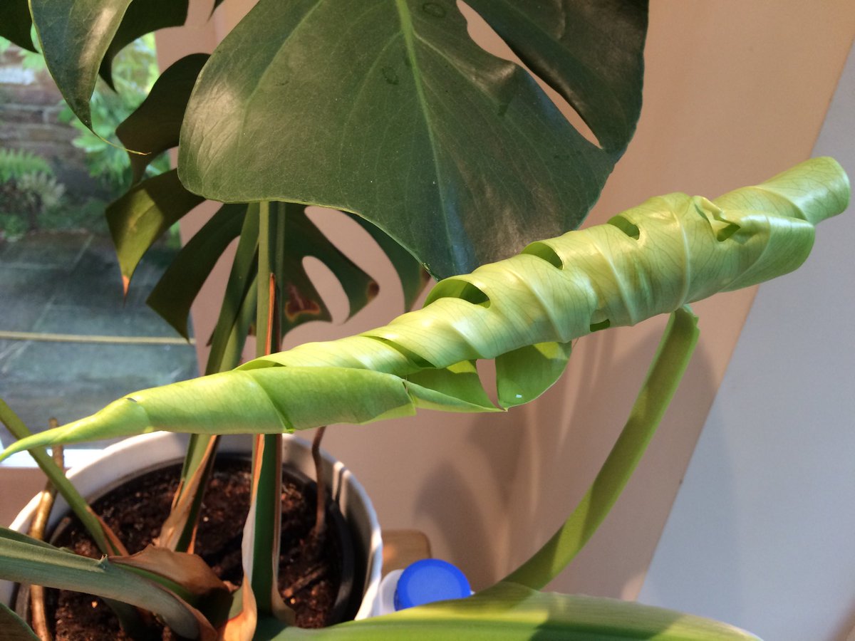 New Leaf Unfurling On My Monstera Deliciosa As Spring Starts To Warm Up Plant Leaves Monstera Deliciosa Spring Starts